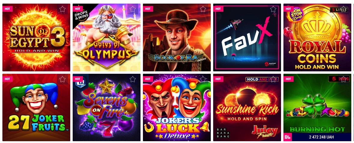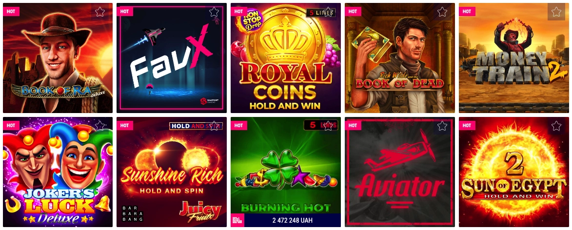 Які слоти дають у Фавбет казино?