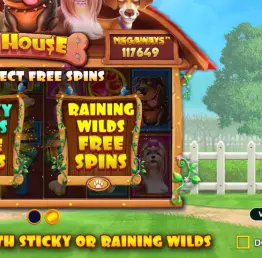 Той, хто вирішив грати в слот Дог Хаус, завдяки системі Megaways отримає високі шанси зірвати великий куш на короткій дистанції. Суть технології полягає у постійній зміні ігрового.поля. Тобто з кожним новим раундом модифікується:
